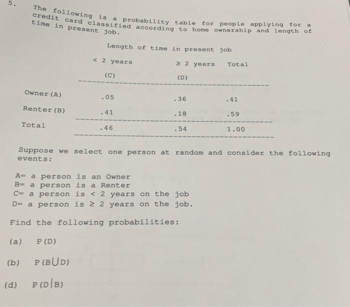 Solved 5 Credit Card Classified According To Home Ownership Chegg Com
